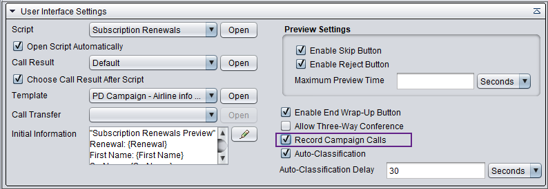Note that two separate recordings are created if both campaign and user recording are activated. If both campaign and queue recording are activated, only one recording (campaign) is created.