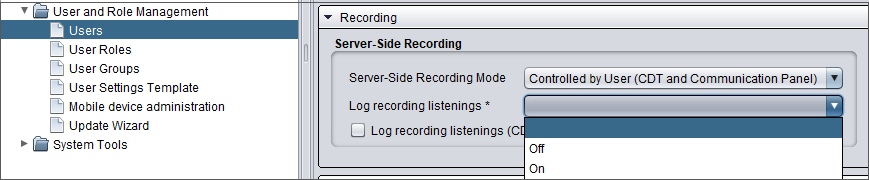 To require users to give a reason before listening to a recording, select Log recording listenings.