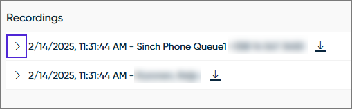 To listen to a recording, open it by clicking the arrow at the beginning of the line and click
