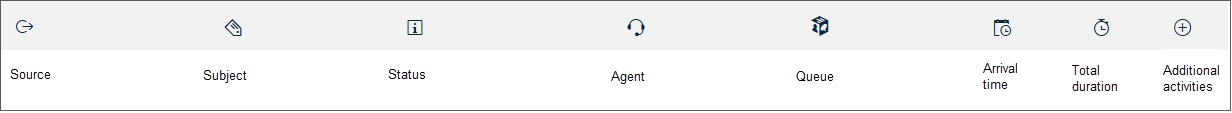 Email ID / Email chain For emails, tasks, and action items: enter the internal ID number. Status Choose all status values, or one from In queue, Abandoned, In process, Wrap-up, or Handled. Queue Choose all queues, or one from the queue list. Agent name Choose one from the agent list. Date range Define the date and time range with the calendar tool ( ). The default date range is the current day. You can also enter the date and time manually. The format depends on your UI language. For example, if your UI language is English, use the format MM/DD/YY for the dates and the 12-hour format (AM/PM) for the time range.