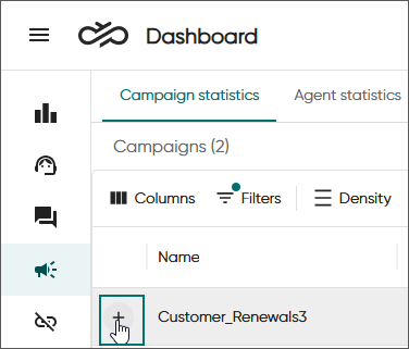 To see the details and progress of a campaign, click the plus sign: