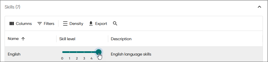 skill level, increase or decrease the level by either sliding the pointer or by selecting a new skill value. Use the filter to list fewer skills if needed.