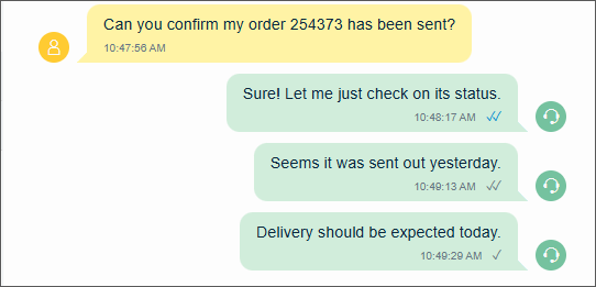 Delivery status notifications for conversational messaging chats via Conversation API are supported. This means that agents see the following icons when their message has been: