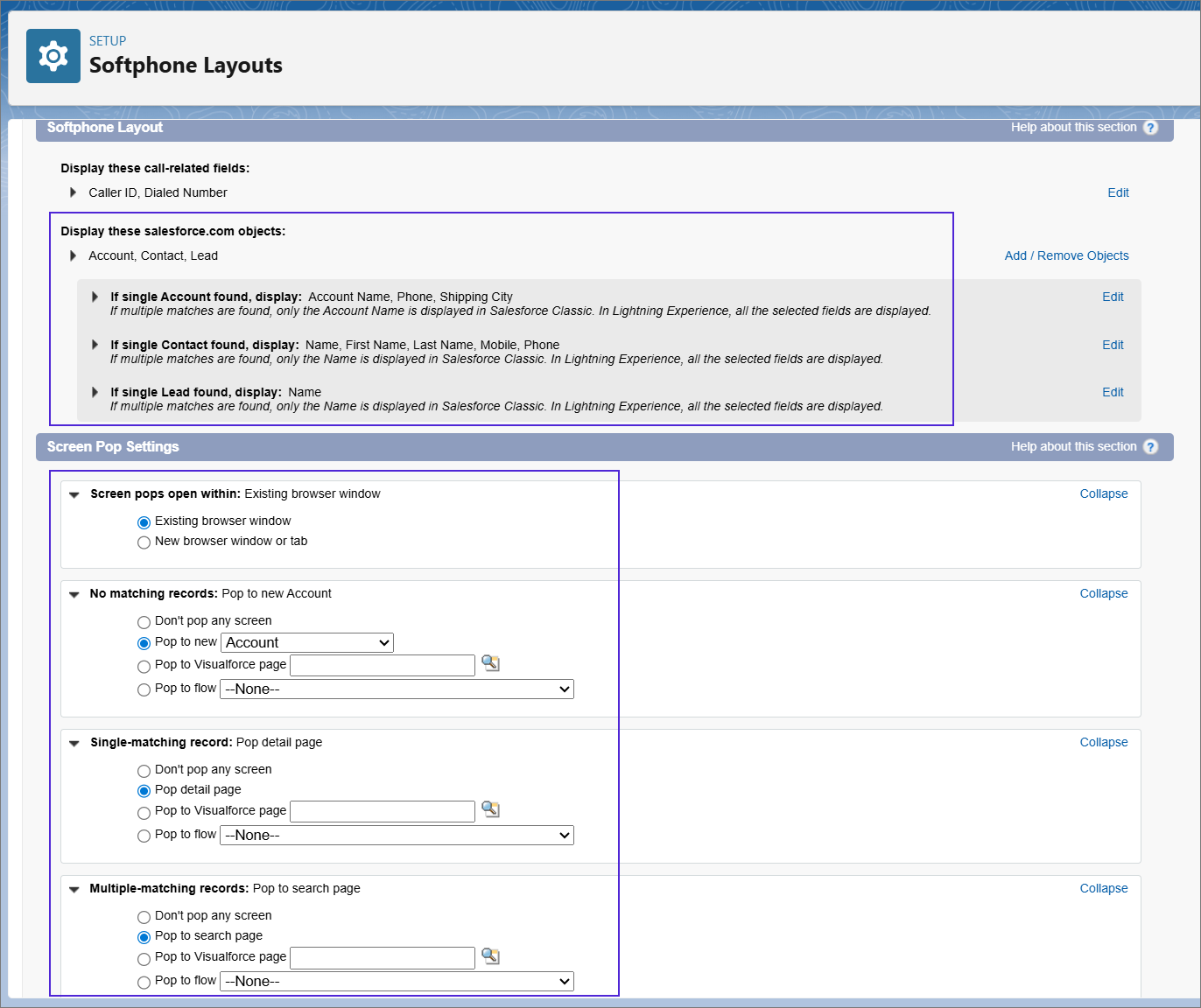 The Salesforce integration now uses Softphone Layouts to control the information agents see when a new conversation is offered to them. This means you'll need to add a Softphone layout in your Salesforce configuration.