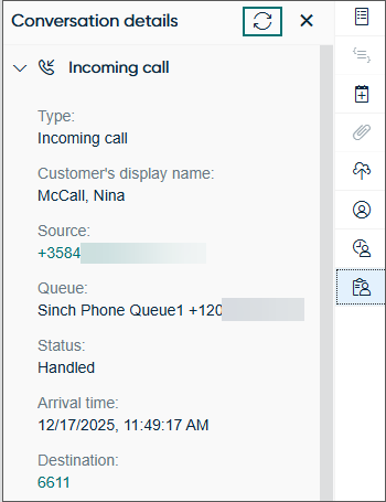 Conversation details has the refresh option for reloading information in the view.