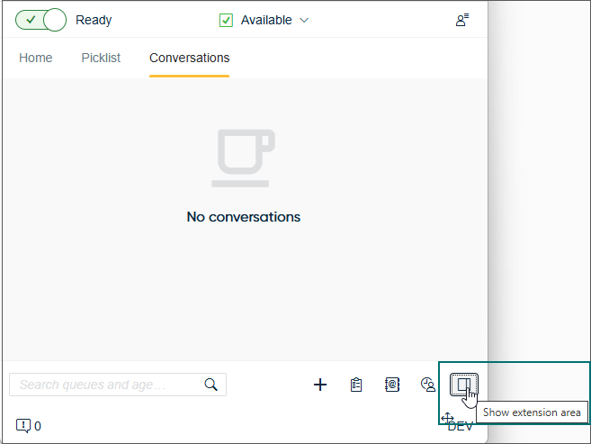 It's now possible to have the custom extension area in any of the main views: Home, Picklist, History, and Directory. Clicking the extension area button in the bottom right corner opens or hides the bar.