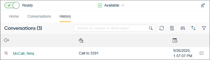The History and Picklist views, and the hunt group offering screen show the customer name for an incoming queue conversation if found in the Directory.