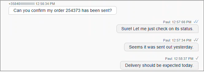 CP now supports delivery status notifications for conversational messaging chats via Conversation API. This means that users see when their message has been sent, delivered, and read by the customer.