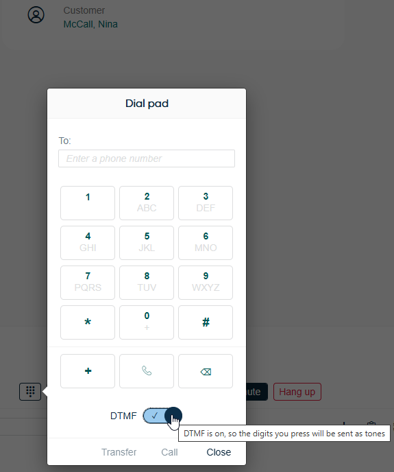 The previously used DTMF button has now been changed to a switch for better visualisation of its on/off state. Additionally, the on/off set state is now maintained between calls and user sessions.