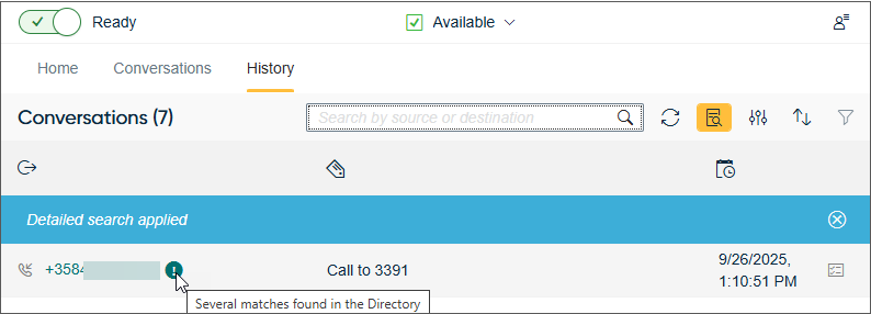 It's now possible to search for specific words or phrases within call transcripts using the detailed search in the History view if the system is configured to save them.