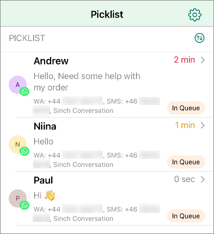 Tip: In Picklist, you can pick several conversations by swiping all the way left on them one after another.